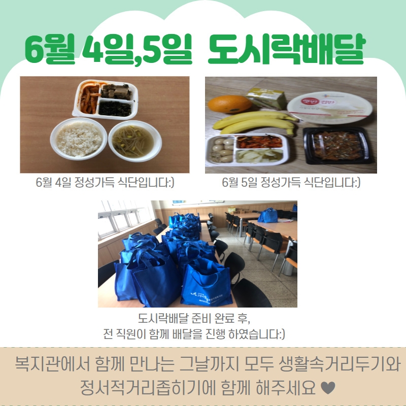 6월 4일, 6월 5일 코로나19 확산방지를 위한 경로식당 이용자 분들 대상 도시락 배달 진행 페이지 정보 작성자 관리자 댓글 0건 조회527회 작성일 20-06-05 16:56 목록 본문 이전글6월 29일 코로나19 확산방지를 위한 경로식당 이용자 분들 대상 도시락 배달 진행 20.06.30 다음글6월 2일,3일 코로나19 확산방지를 위한 경로식당 이용자 분들 대상 도시락 배달 진행 20.06.03 댓글 0 댓글목록 등록된 댓글이 없습니다.