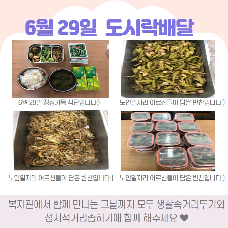 6월 29일 코로나19 확산방지를 위한 경로식당 이용자 분들 대상 도시락 배달 진행 페이지 정보 작성자 관리자 댓글 0건 조회506회 작성일 20-06-30 08:44 목록 본문 이전글6월 30일 코로나19 확산방지를 위한 경로식당 이용자 분들 대상 도시락 배달 진행 20.07.01 다음글6월 4일, 6월 5일 코로나19 확산방지를 위한 경로식당 이용자 분들 대상 도시락 배달 진행 20.06.05 댓글 0 댓글목록 등록된 댓글이 없습니다.