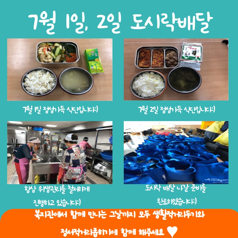 7월 1일, 7월 2일 코로나19 확산방지를 위한 경로식당 이용자 분들 대상 도시락 배달 진행 페이지 정보 작성자 관리자 댓글 0건 조회514회 작성일 20-07-02 15:40 목록 본문 이전글7월 3일,6일 코로나19 확산방지를 위한 경로식당 이용자 분들 대상 도시락 배달 진행 20.07.06 다음글일상생활지원사업 - 나누고, 들르고, 이해하고! '나들이' 6월 이야기 20.07.01 댓글 0 댓글목록 등록된 댓글이 없습니다.