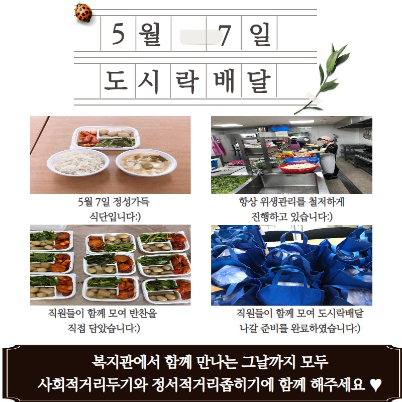 5월 7일 코로나19 확산방지를 위한 경로식당 이용자 분들 대상 도시락 배달 진행 페이지 정보 작성자 관리자 댓글 0건 조회494회 작성일 20-05-08 16:05 목록 본문 이전글5월 8일 코로나19 확산방지를 위한 경로식당 이용자 분들 대상 도시락 배달 진행 20.05.11 다음글5월 6일 코로나19 확산방지를 위한 경로식당 이용자 분들 대상 도시락 배달 진행 20.05.07 댓글 0 댓글목록 등록된 댓글이 없습니다.