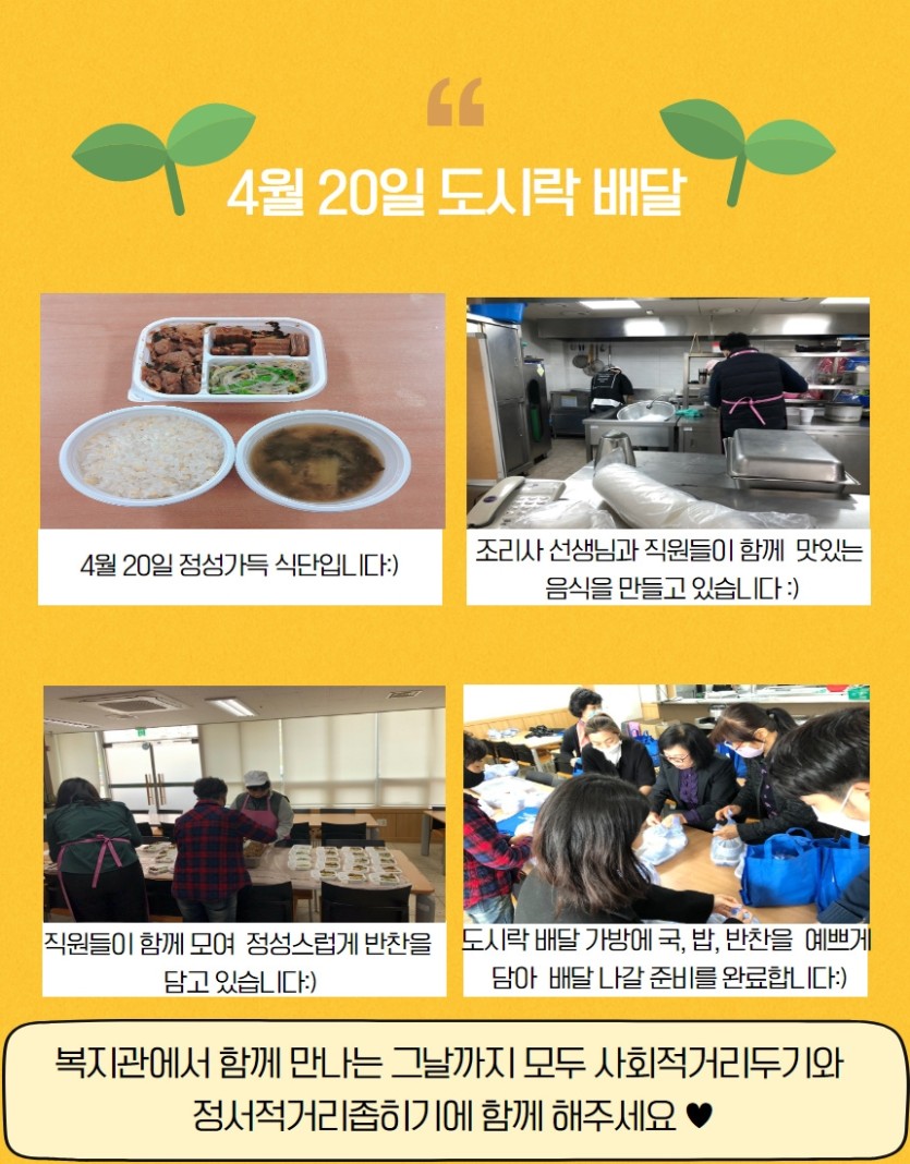 4월 20일 코로나19 확산방지를 위한 경로식당 이용자 분들 대상 도시락 배달 진행 페이지 정보 작성자 관리자 댓글 0건 조회485회 작성일 20-04-21 08:36 목록 본문 이전글4월 21일 코로나19 확산방지를 위한 경로식당 이용자 분들 대상 도시락 배달 진행 20.04.22 다음글4월 17일 코로나19 확산방지를 위한 경로식당 이용자 분들 대상 도시락 배달 진행 20.04.20 댓글 0 댓글목록 등록된 댓글이 없습니다.