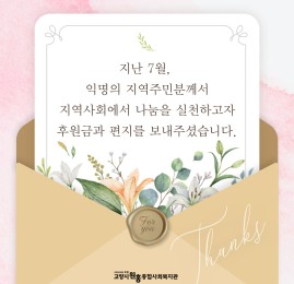 익명의 지역주민, 식생활 취약계층을 위한 후원금 및 편지 전달