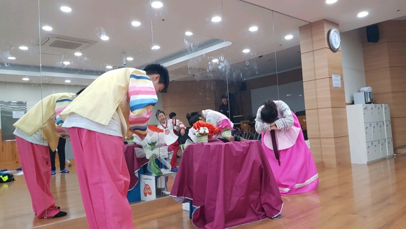 전통한복을 입어보고, 전통혼례 올리는 과정을 체험해 볼 수 있는 시간이었습니다