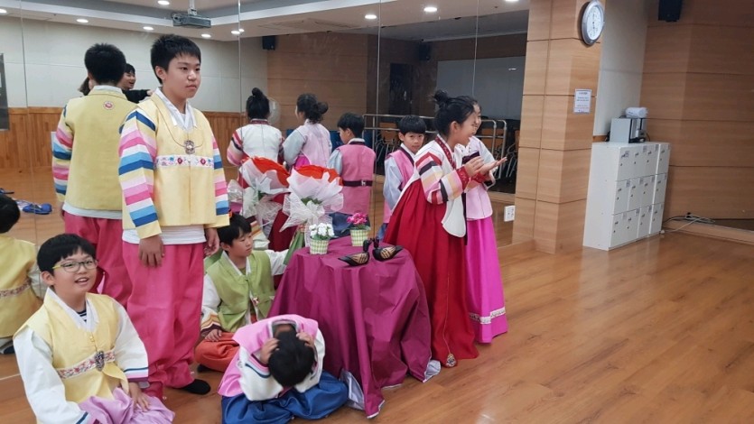 전통혼례 체험하는 과정에서 아이들이 많이들 부끄러워했지만, 전통을 왜 지켜야하는지에 대한 의견을 나누는 시간에는 누구보다 집중해서 이야기 나누는 모습을 볼 수 있었습니다.