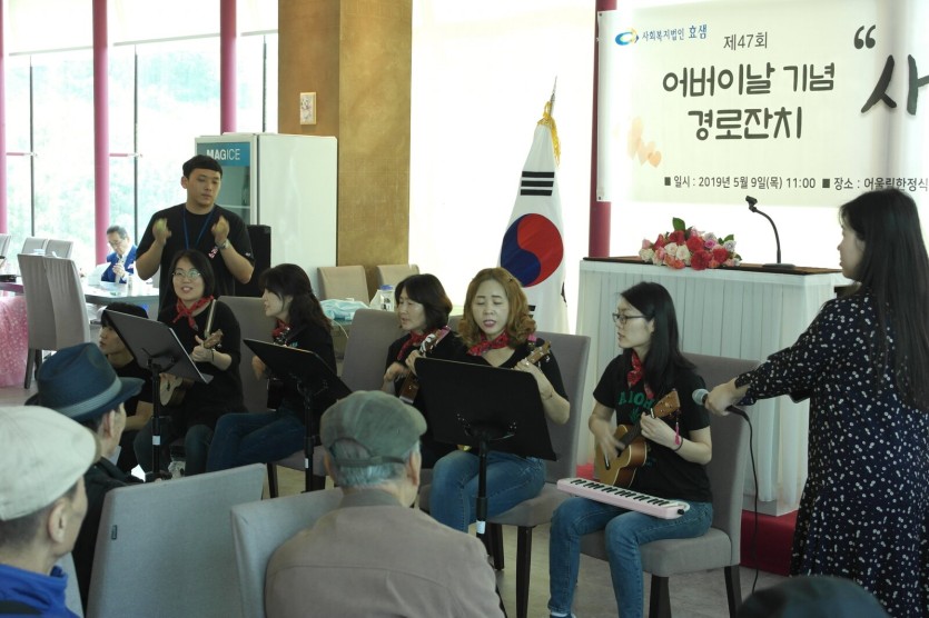 그 자리에서 원흥종합사회복지관 우쿨렐레 주민 모임인 소리낼래가 식전행사로 공연을 진행했는데요!