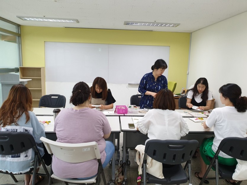 복지관 2층 배움나눔교실에서 주민재능나눔교실 '프랑스 자수'가 진행됐습니다.