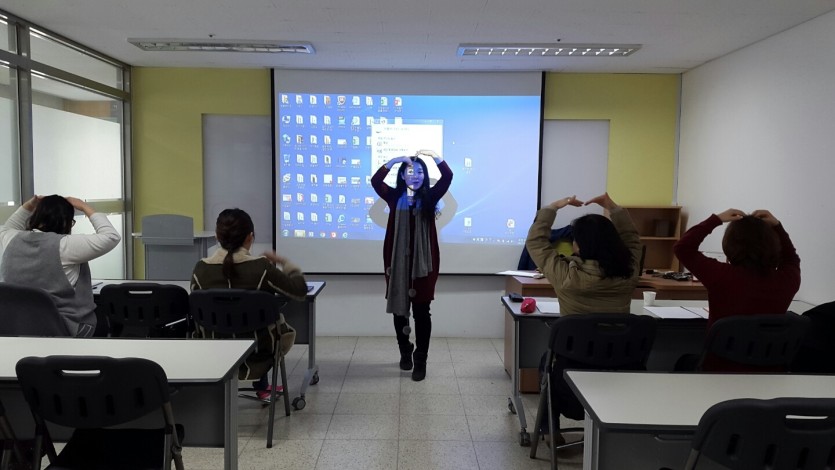 열정 가득한 모습으로 동화구연에 대한 이론을 배우고