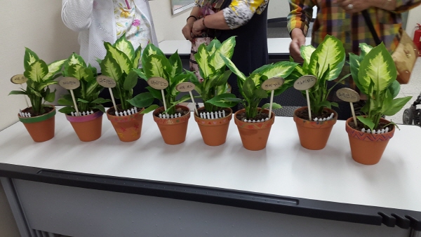 압화를 이용해 직접 만든 명찰을 걸고  복지관 '행복마을 꿈꾸는 정원'에서 한컷!