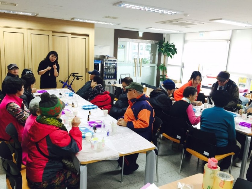 ▲ 천연비누 만드는 방법 설명을 듣는 사진