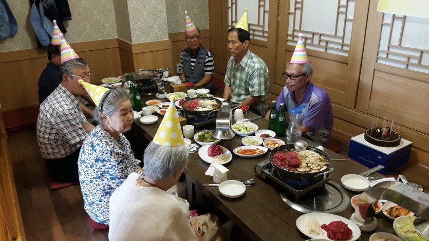 * 내용 : 8월 어르신의 생신잔치를 축하드리기 위해 선물 및 식사대접