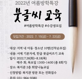 2022년 여름방학특강 아동, 청소년 붓글씨교육