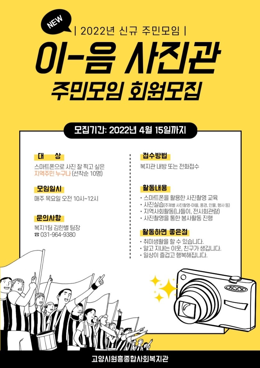 2022년 신규주민모임 <이음사진관> 참여자 모집홍보 페이지 정보 작성자 관리자 댓글 0건 조회367회 작성일 22-03-30 11:02 목록 본문 이전글2022년 어르신 <인조이스쿨> 참여자 모집홍보 22.03.30 다음글2022년 생활과학교실 참여자 모집 22.04.25 댓글 0 댓글목록 등록된 댓글이 없습니다.