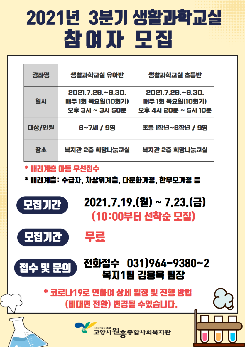 생활과학교실 3분기 참여자 모집안내 페이지 정보 작성자 관리자 댓글 0건 조회360회 작성일 21-07-10 10:25 목록 본문 이전글장애인평생교육프로그램 컴퓨터자격증취득반(ITQ한글) 참여자 모집 21.06.22 다음글2021년 하반기 인조이 스쿨 프로그램(풍선아트, 컴퓨터교실) 참여자 추가 모집 (9월~11월) 21.08.26 댓글 0 댓글목록 등록된 댓글이 없습니다.