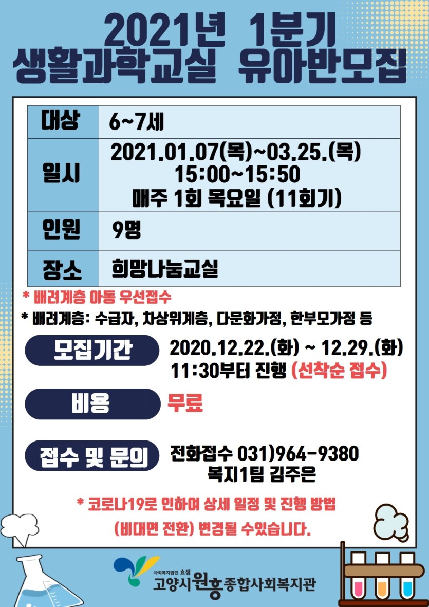 2021년 1분기 생활과학교실 유아반 모집