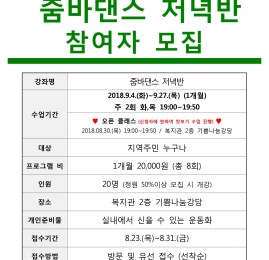 줌바댄스 저녁반 접수 안내