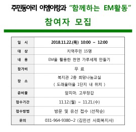 환경살림주민동아리 이엠이랑 과 함께하는 EM활동 참여자 모집