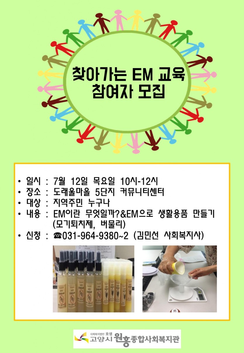 환경살림 주민동아리 이엠이랑 "찾아가는 EM교육" 참여자 모집 페이지 정보 작성자 관리자 댓글 0건 조회382회 작성일 18-06-26 14:14 목록 본문 이전글2018년 아동대상 여름방학 프로그램 "자,함께 놀아보자!" 참여자 모집 안내 18.07.11 다음글환경살림주민동아리 이엠이랑 과 함께하는 EM활동 참여자 모집 18.11.16 댓글 0 댓글목록 등록된 댓글이 없습니다.