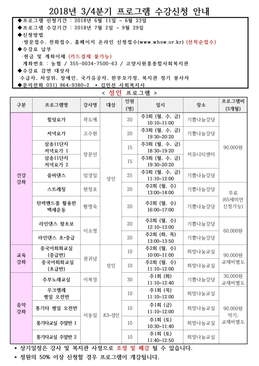 3분기 성인 및 아동 프로그램 & 실버대학 접수 안내 페이지 정보 작성자 관리자 댓글 0건 조회690회 작성일 18-06-08 18:45 목록 본문 이전글2023년 3분기(7~9월) 평생교육(성인, 아동, 장애인) 프로그램 일정 안내 23.06.09 다음글2018 청소년자원봉사학교 신청 안내 18.07.11 댓글 0 댓글목록 등록된 댓글이 없습니다.