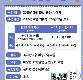 2025년 1기 아동 생활과학교실 수강생 모집