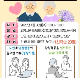2025년 열린강좌 주민교육 "함께해서 더 아름다운 세상, 함께하는 양성평등 이야기" 참여자 모집