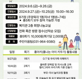 가족관계 향상 프로그램 흥아키(흥나는 아이 키우기) 참여자 모집