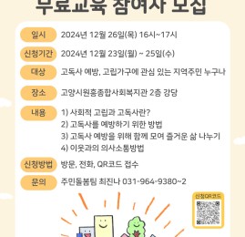 고독사 예방 및 의사소통방법 무료교육 참여자 모집