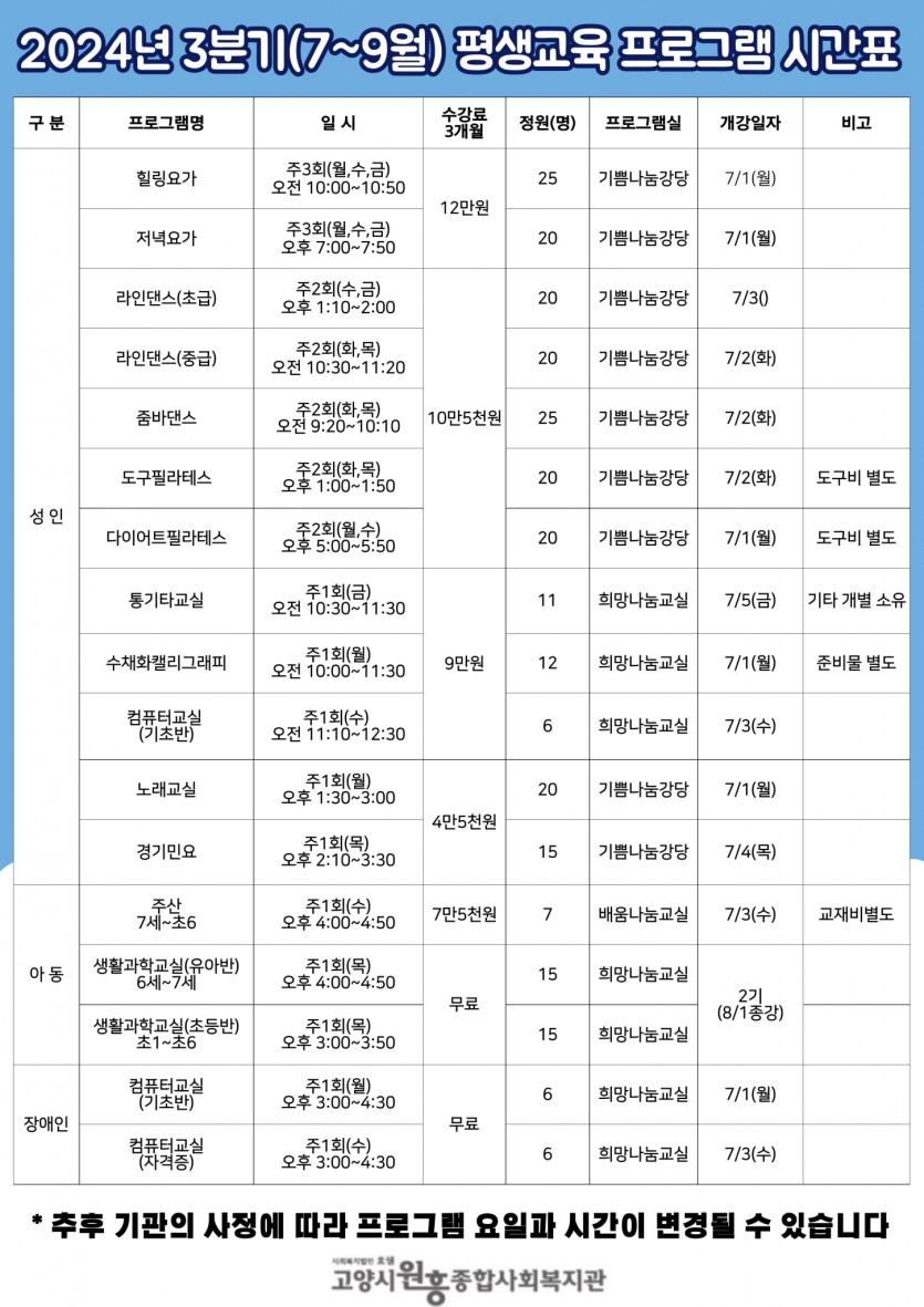 **수강신청 기간 에는 온라인 접수&방문접수(60세 이상)만 진행됩니다. 수강 신청시 착오없으시길 바랍니다.
