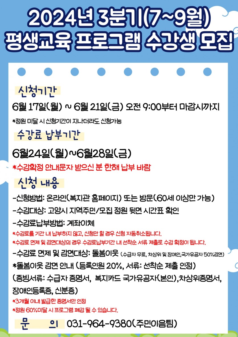 - 다음글어르신 생활과학교실 수강생 모집 24.06.04