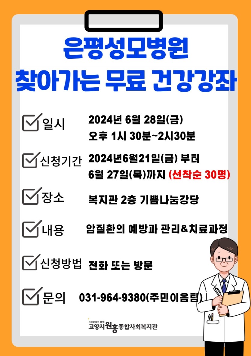 은평성모병원 찾아가는 무료 건강강좌 참여자 모집