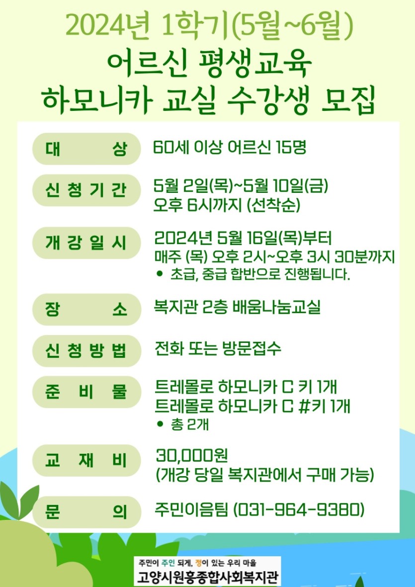 * 하모니카 교실이 새롭게 개강되었습니다. 많은 관심과 신청 바랍니다.