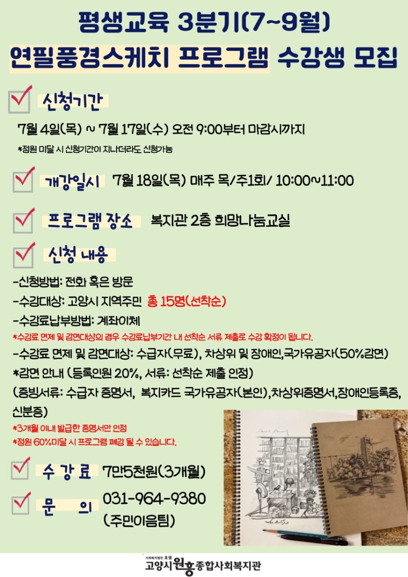 2024년 3분기 연필풍경스케치 프로그램 수강생 모집 페이지 정보 작성자 관리자 댓글 0건 조회442회 작성일 24-07-04 18:43 목록 본문 이전글청소년자원봉사단 '리본(re-born)봉사단'을 모집합니다. 24.03.12 다음글2024년 2기 생활과학교실(유아,초등) 수강생 모집 24.05.14 댓글 0 댓글목록 등록된 댓글이 없습니다.