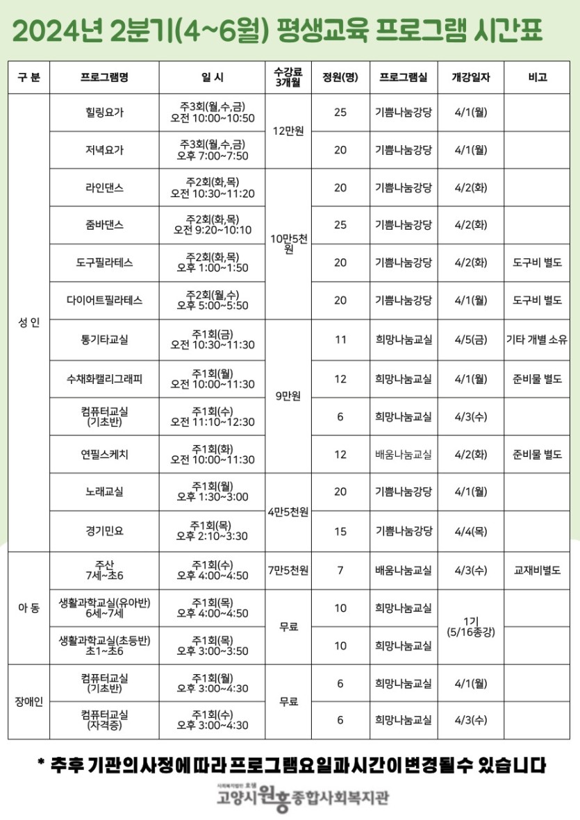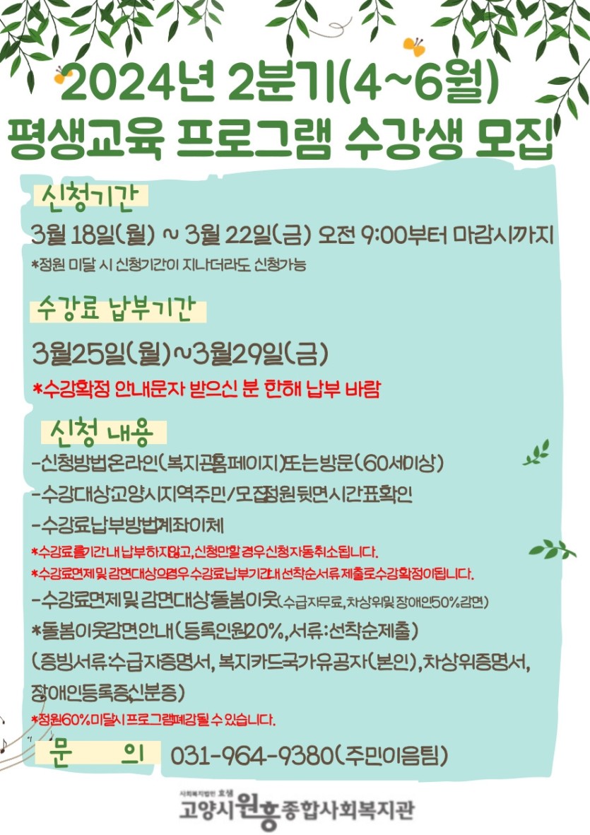 **수강신청 기간 에는 온라인 접수&방문접수(60세 이상)만 진행됩니다. 수강 신청시 착오없으시길 바랍니다.