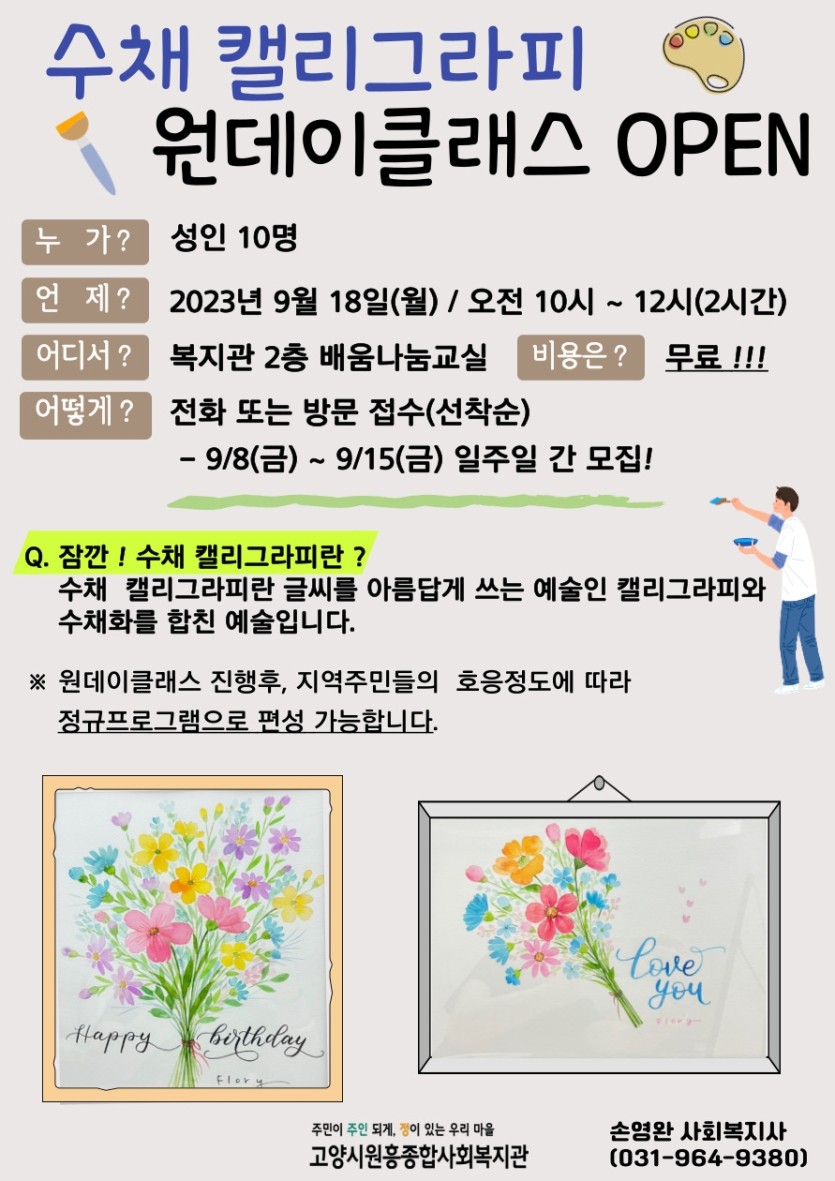 2023년 성인 수채캘리그라피 오픈클래스 수강생 모집