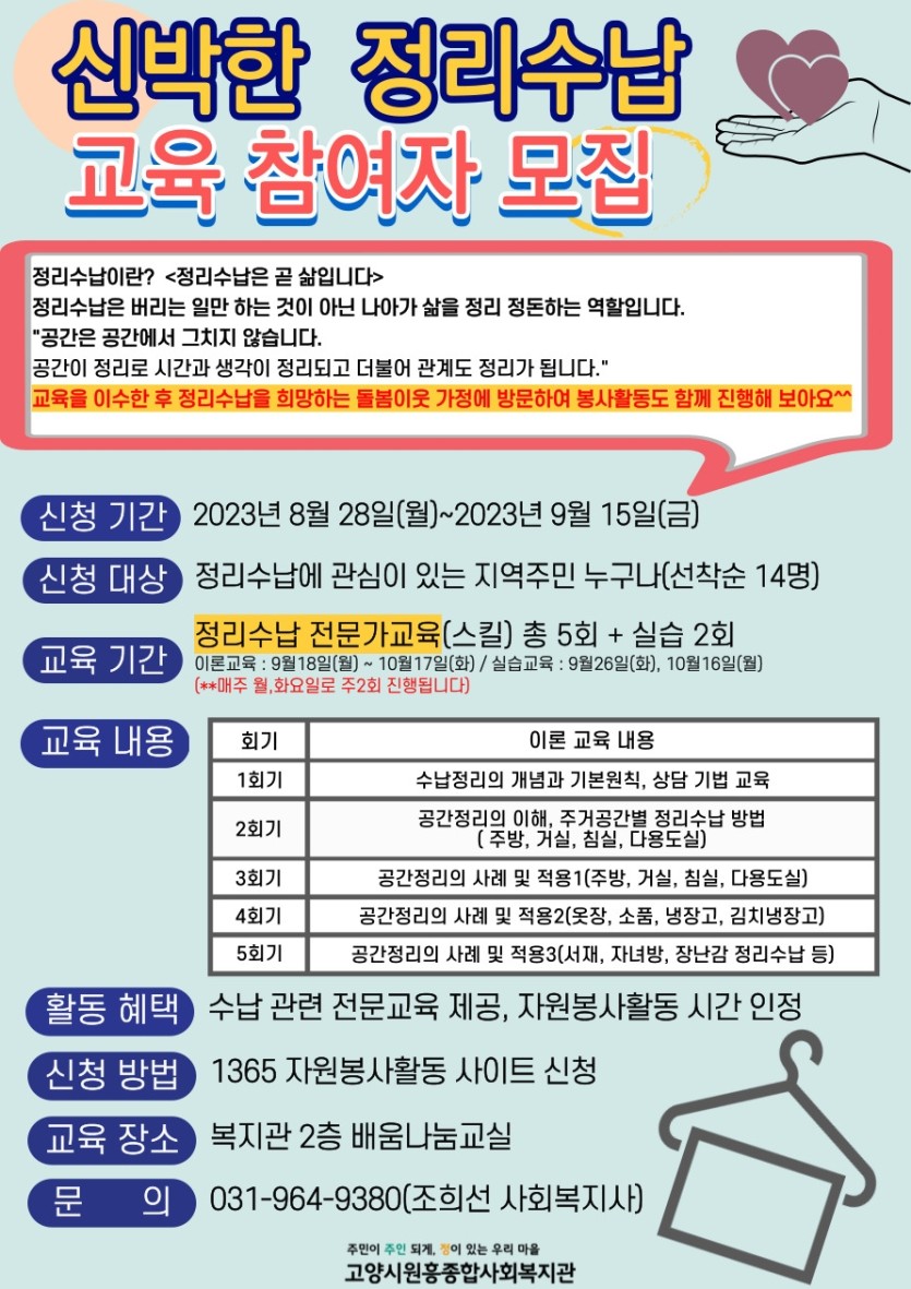 - 대상: 정리수납에 관심이 있는 지역주민 누구나