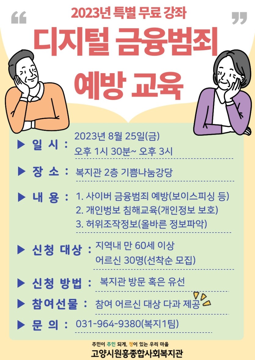 지역 내 만 60세 이상 어르신들 대상으로 디지털 금융 범죄 예방교육을 진행하고자 합니다.