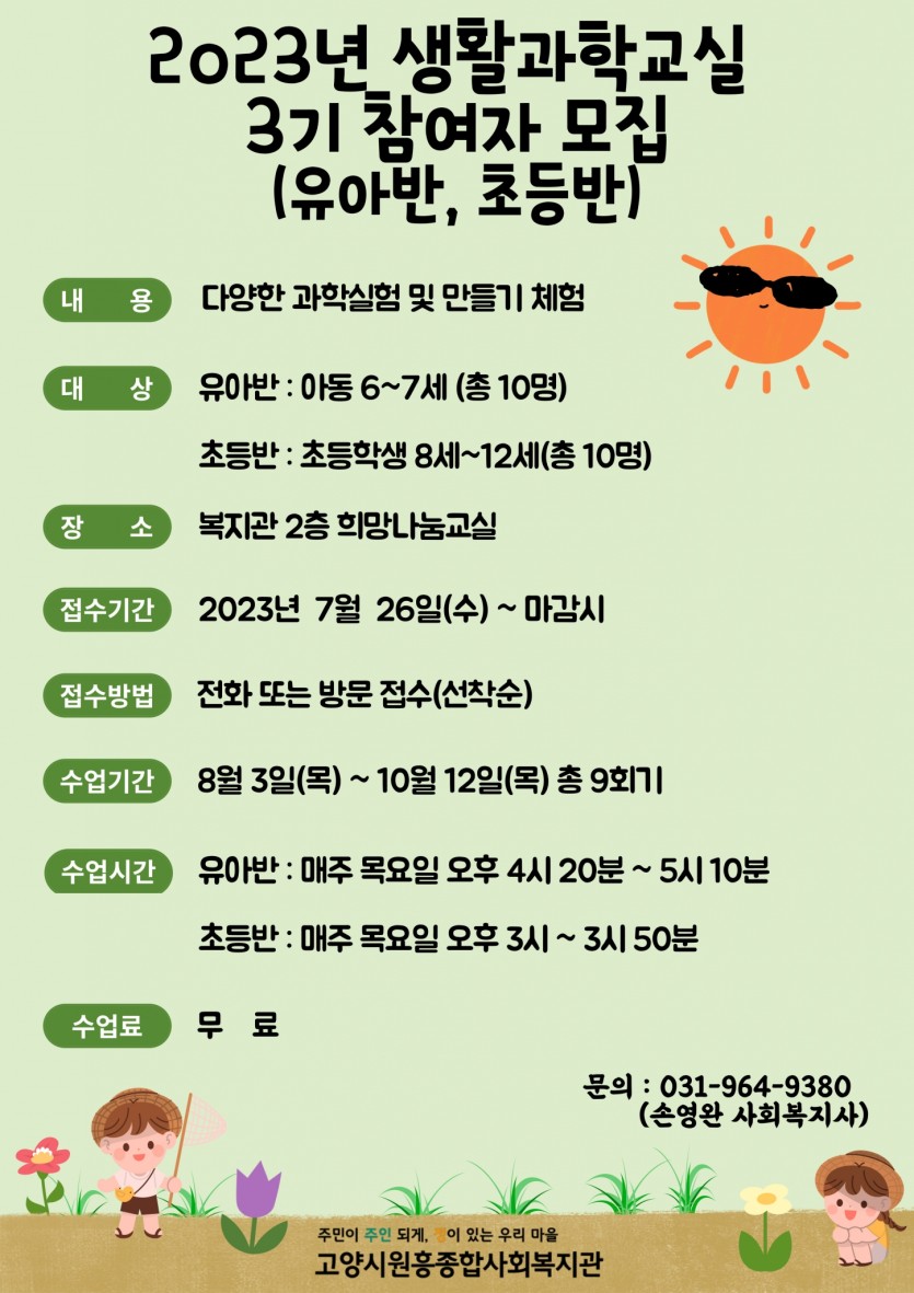 2023년 3기 생활과학교실(유아반, 초등반) 수강생 모집