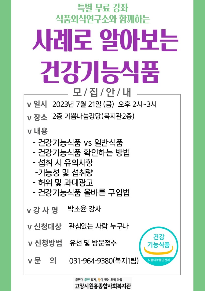 사례로 알아보는건강식품기능 무료 강좌 참여자 모집 페이지 정보 작성자 관리자 댓글 0건 조회309회 작성일 23-07-12 15:17 목록 본문 이전글2023년 3기 생활과학교실(유아반, 초등반) 수강생 모집 23.07.25 다음글[무료특별강좌] 디지털 금융 범죄 예방교육 참여자 모집 23.08.08 댓글 0 댓글목록 등록된 댓글이 없습니다.