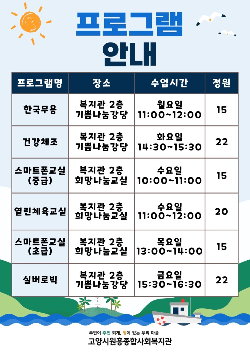 어르신인조이스쿨 2학기 수강생 모집 안내 및 프로그램