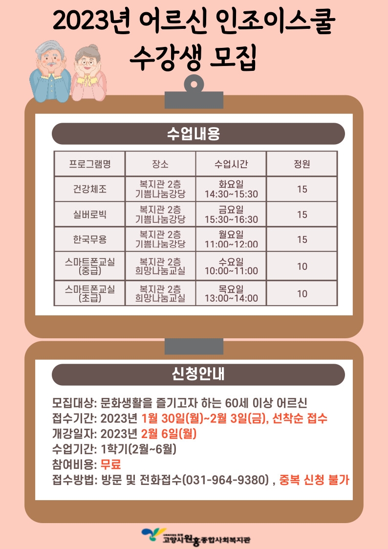 2023년 어르신 평생교육 프로그램 수강생 모집 페이지 정보 작성자 관리자 댓글 0건 조회364회 작성일 23-01-30 15:40 목록 본문 이전글2023년 1분기 경기민요 평생교육프로그램(성인) 수강생 모집 23.02.09 다음글2023년 다이어트 필라테스 오픈클래스 수강생 모집 23.08.04 댓글 0 댓글목록 등록된 댓글이 없습니다.
