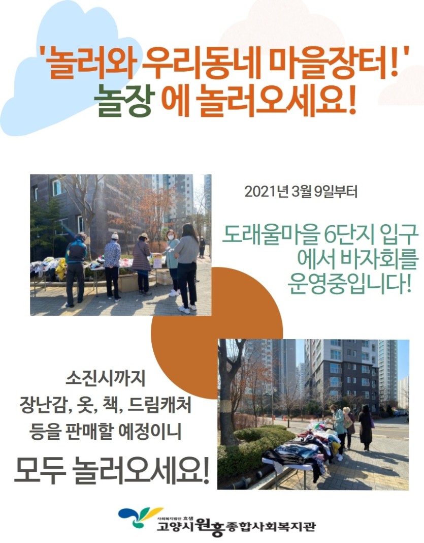 놀장바자회 이야기 페이지 정보 작성자 관리자 댓글 0건 조회463회 작성일 21-03-09 17:01 목록 본문 이전글고양시특별방역주간(2021.4.26.~5.10.) 종합사회복지관 일제 방역소독의 날 21.04.30 다음글1월 첫째주 경로식당 이야기 21.01.11 댓글 0 댓글목록 등록된 댓글이 없습니다.