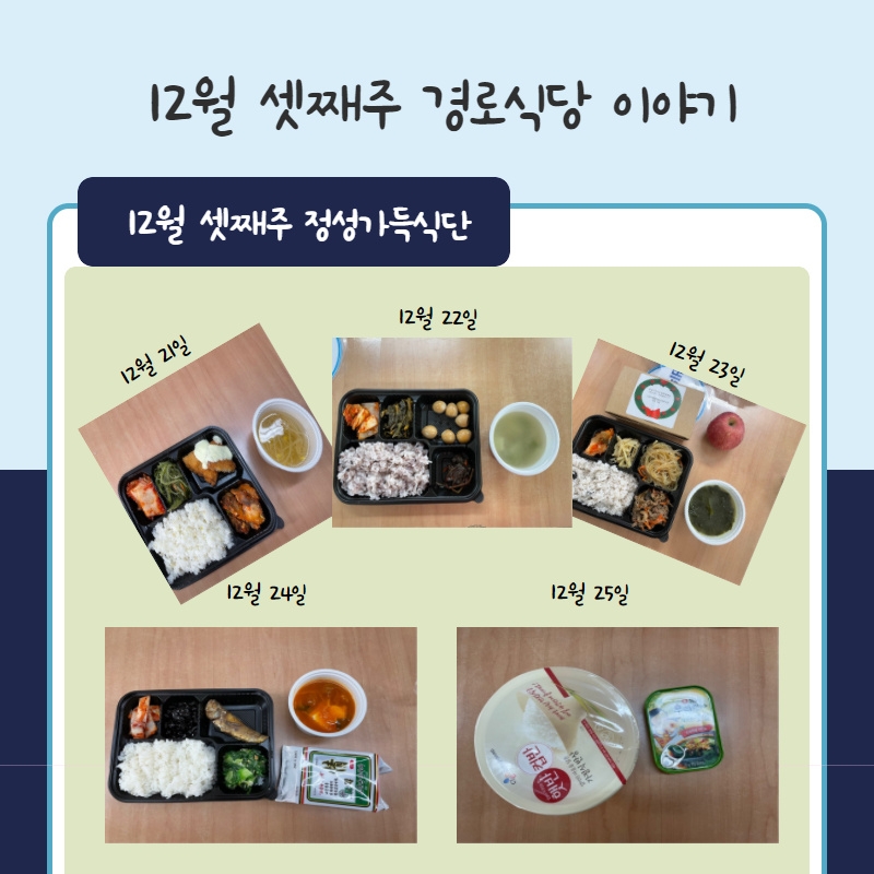 12월 셋째주 경로식당 이야기 페이지 정보 작성자 관리자 댓글 0건 조회309회 작성일 20-12-28 16:49 목록 본문 이전글따듯한 겨울나기 4탄 20.12.31 다음글12월 둘째주 경로식당 이야기 20.12.22 댓글 0 댓글목록 등록된 댓글이 없습니다.