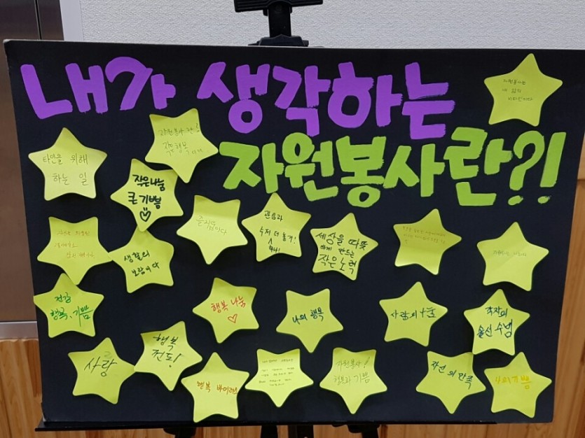 간담회의 주제 "당신이 생각하는 자원봉사란?"