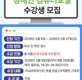 2026년 장애인 컴퓨터교실 1학기 수강생 모집