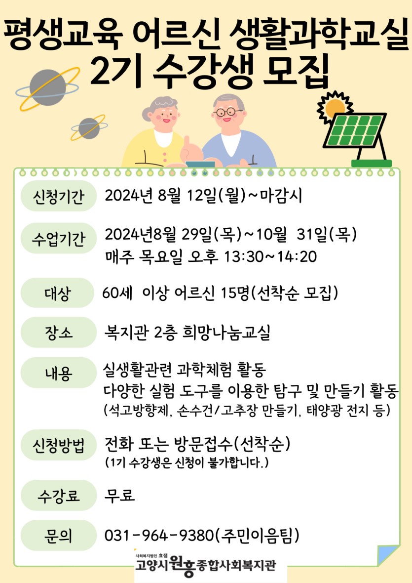 2024년 2기 어르신 생활과학교실 수강생 모집