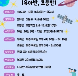 2023년 4기 생활과학교실(유아반, 초등반) 수강생 모집 안내