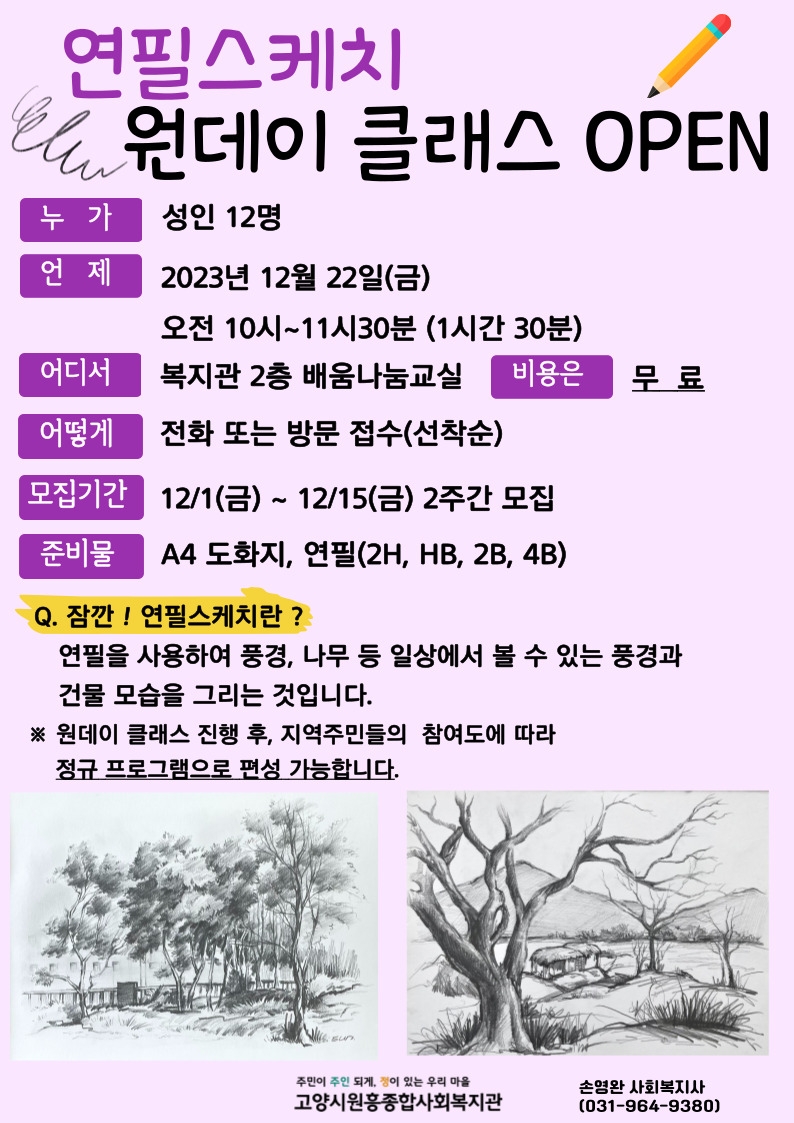 2023년 12월 성인 연필스케치 오픈클래스 수강생 모집 안내
