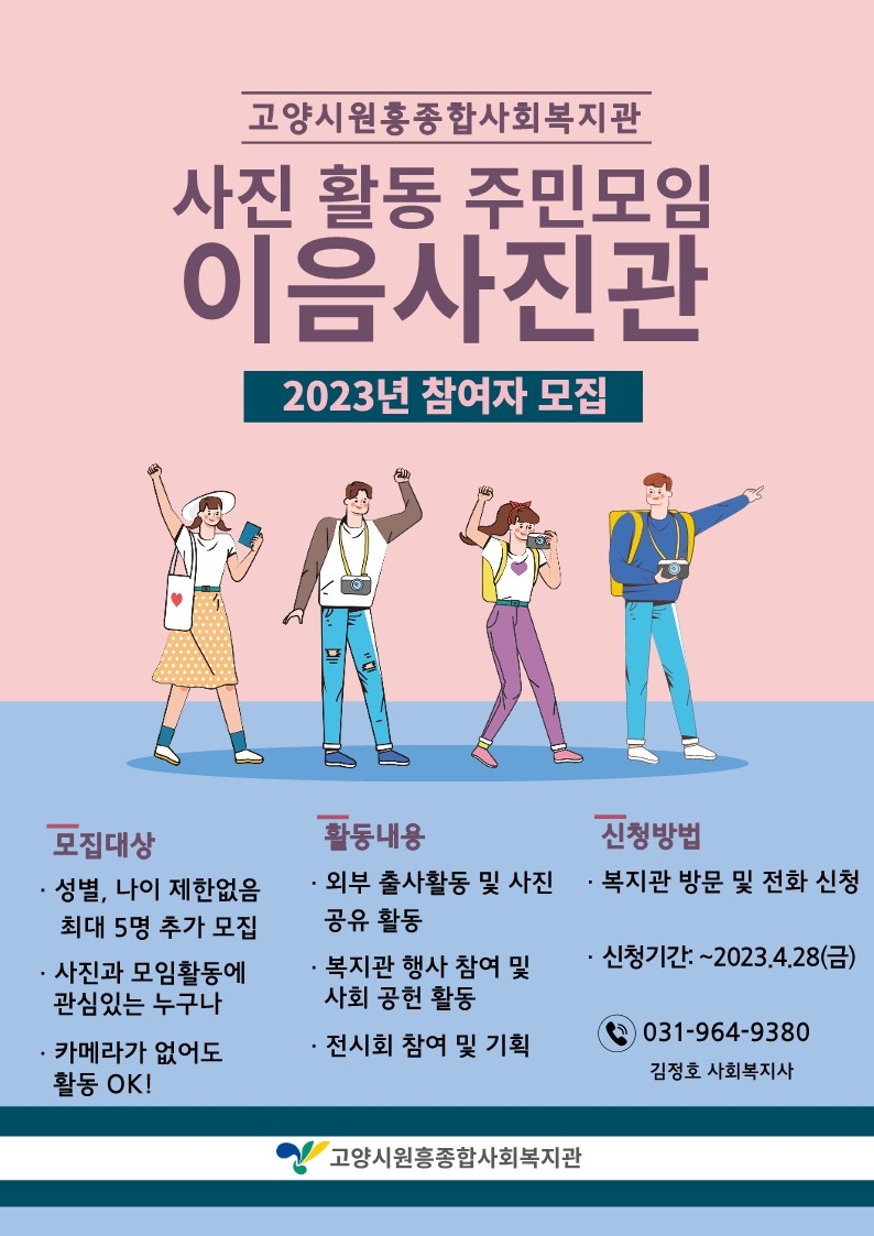 고양시원흥종합사회복지관의 주민모임(이음사진관)의 신규참여자를 모집합니다!!
